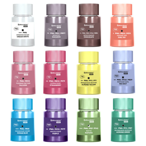 Краски акриловые художественные 12 ПАСТЕЛЬНЫХ цветов в банках по 22 мл, BRAUBERG HOBBY, 192411