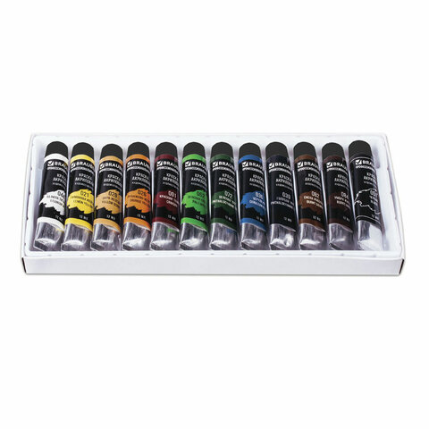 Краски акриловые художественные BRAUBERG ART CLASSIC, НАБОР 12 цветов по 12 мл, в тубах, 191122