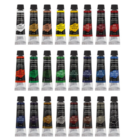 Краски акриловые художественные BRAUBERG ART CLASSIC, НАБОР 24 цвета по 12 мл, в тубах, 191124