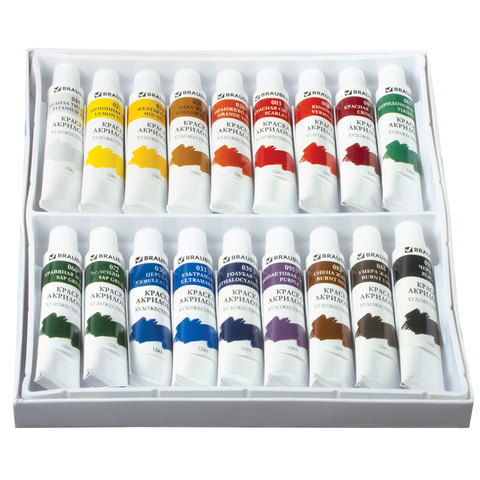 Художественные акриловые краски BRAUBERG ART "DEBUT" предназначены для живописи и декоративных работ.