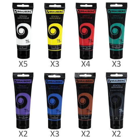 Художественные акриловые краски BRAUBERG ART "DEBUT" предназначены для живописи и декоративных работ.