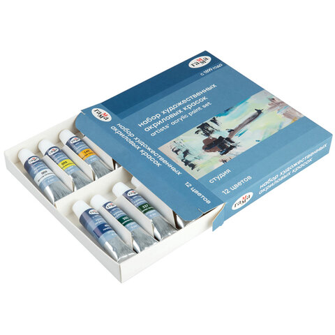 Краски акриловые художественные ГАММА "Студия", 12 цветов, туба 9 мл, картонная упаковка, 15032021