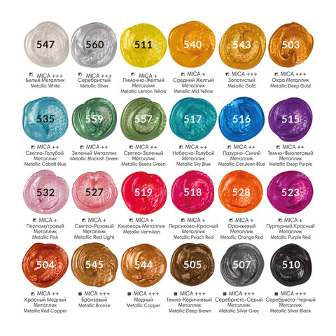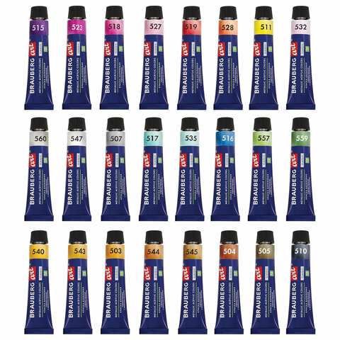 Краски акриловые художественные металлик BRAUBERG ART CLASSIC, НАБОР 24 шт, в тубах 12 мл, 191720