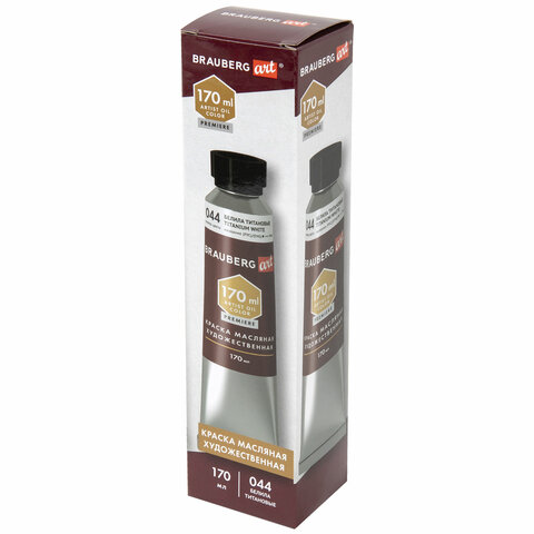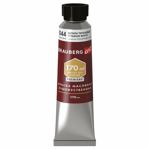 Краска масляная художественная BRAUBERG ART PREMIERE 170 мл, проф. серия, БЕЛИЛА ТИТАНОВЫЕ, 191394