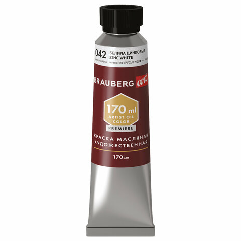 Краска масляная художественная BRAUBERG ART PREMIERE 170 мл, проф. серия, БЕЛИЛА ЦИНКОВЫЕ, 191395
