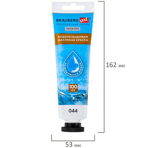 Краска масляная ВОДОРАЗБАВИМАЯ художественная 100 мл, БЕЛИЛА ТИТАНОВЫЕ, BRAUBERG ART, 192289