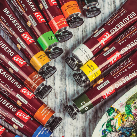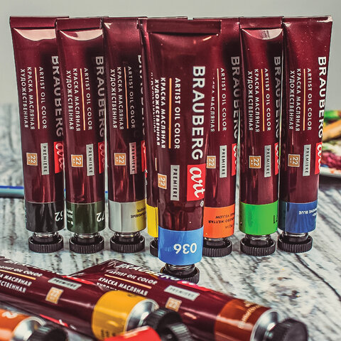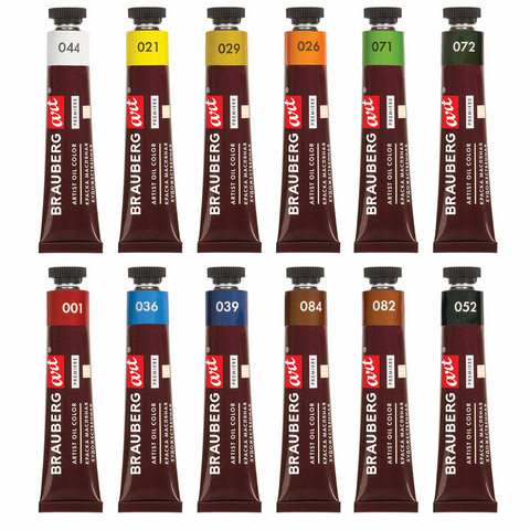 Краски масляные художественные BRAUBERG ART PREMIERE, 12 цв. по 22 мл, в тубах, 191458