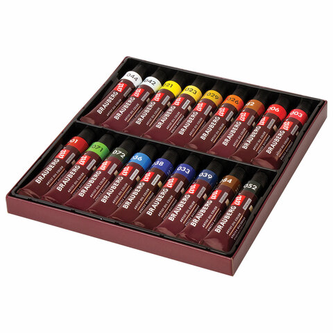 Краски масляные художественные BRAUBERG ART PREMIERE, 18 цв. по 12 мл, в тубах, 191456