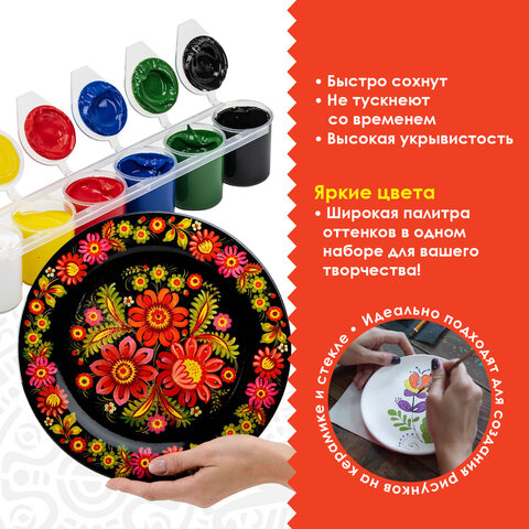Краски акриловые ОСТРОВ СОКРОВИЩ отлично подойдут для создания уникальных рисунков на керамике и стекле.