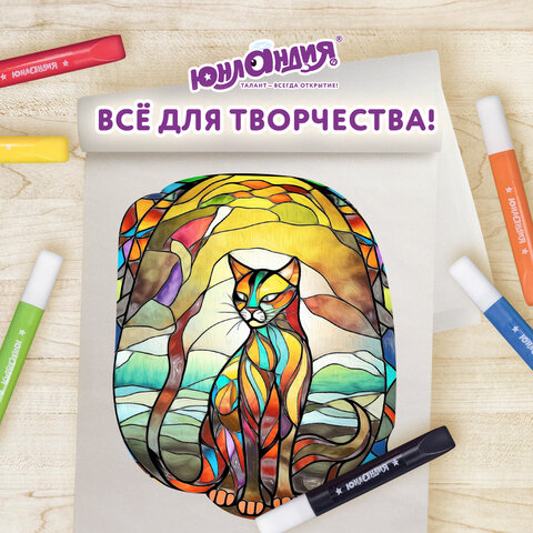 Витражные краски ЮНЛАНДИЯ предназначены для украшения окон, зеркал и других гладких поверхностей яркими аппликациями. Могут быть использованы для декорирования и росписи изделий, изготовления наклеек.