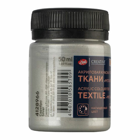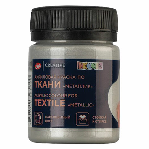 Краска по ткани акриловая "Декола", банка 50 мл, серебряная, Невская Палитра, 4128966