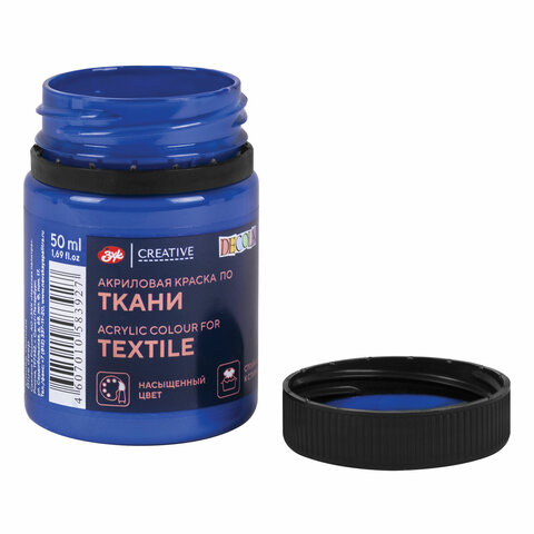 Краска по ткани акриловая "Декола", банка 50 мл, синяя темная, Невская Палитра, 4128517