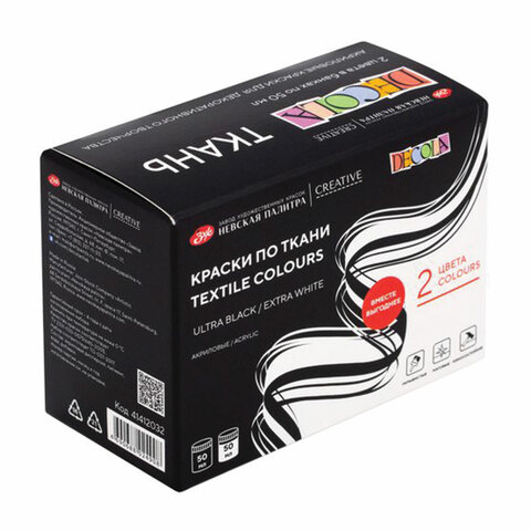 Краски по ткани акриловые "Декола", 2 цвета по 50 мл, в банках, Невская Палитра, 41412032