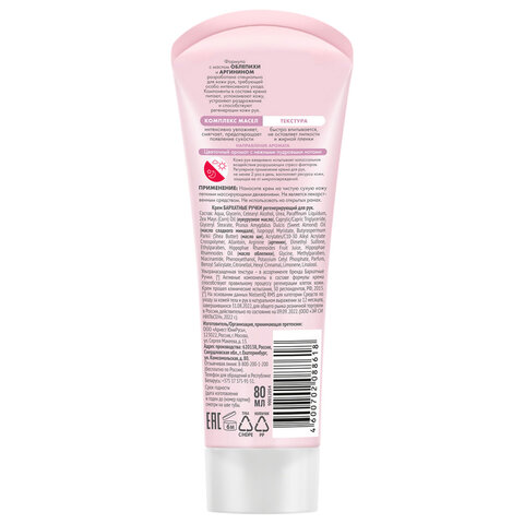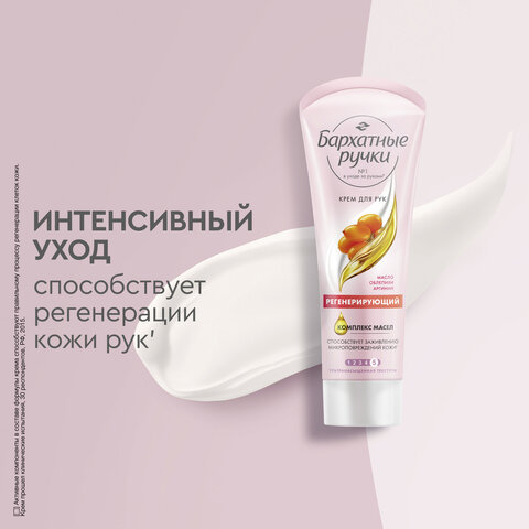 Крем для рук 80 мл, БАРХАТНЫЕ РУЧКИ "Регенерирующий", масло облепихи, аргинин