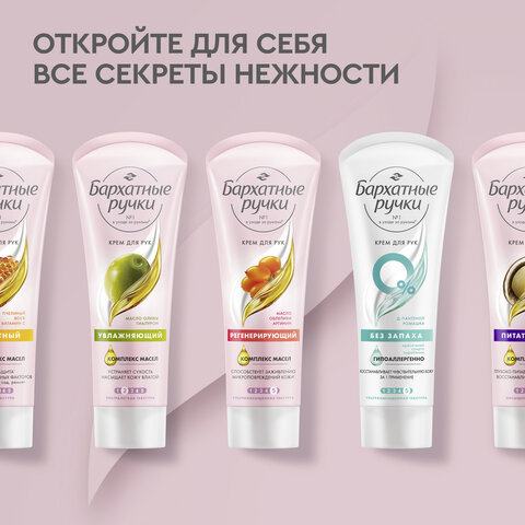 Крем для рук БАРХАТНЫЕ РУЧКИ "Регенерирующий" интенсивно питает, увлажняет, смягчает, предотвращает появление сухости.