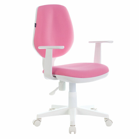Кресло детское BRABIX "Fancy MG-201W", с подлокотниками, пластик белый, розовое, 532409, MG-201W_532409