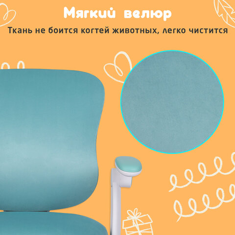 Кресло детское с подставкой для ног BRABIX "Sky MG-206", велюр, голубое, 533155