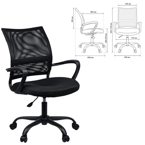 Кресло BRABIX "Cargo MG-391", до 130 кг, пятилучие металлическое, ткань/сетка, черное, 532786