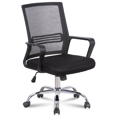 Кресло BRABIX "Daily MG-317", с подлокотниками, хром, черное, 531833