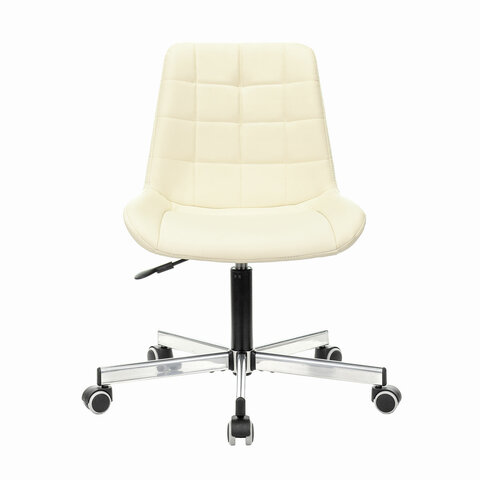 Кресло BRABIX "Deco MG-316", без подлокотников, пятилучие серебристое, экокожа, слоновая кость, 532081