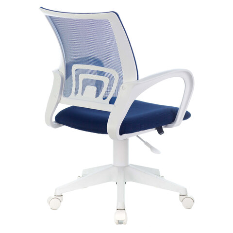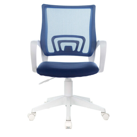 Кресло BRABIX "Fly MG-396W", с подлокотниками, пластик белый, сетка, темно-синее, 532399, MG-396W_532399