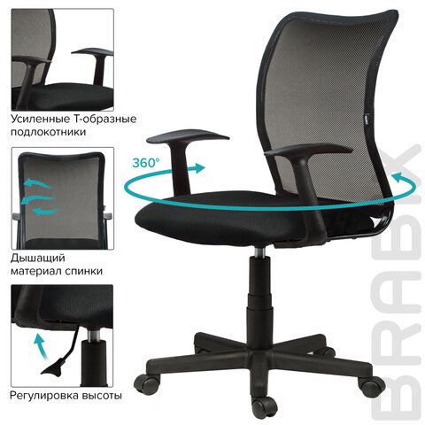 Кресло BRABIX "Spring MG-307", с подлокотниками, черное TW, 531406