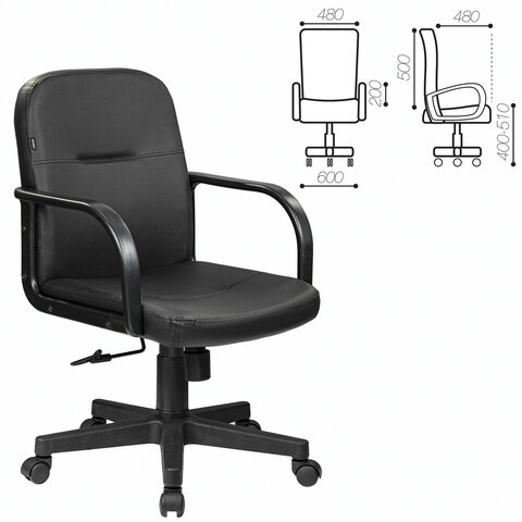 Кресло BRABIX "Top MG-333", с подлокотниками, кожзам, черное, 532553