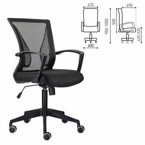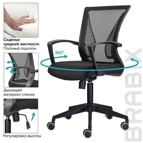 Кресло BRABIX "Wings MG-309", пластик черный, сетка, черное, 532015