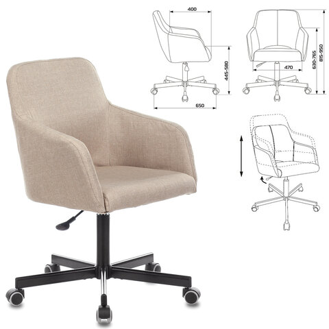 Кресло CH-380M, пятилучие металлическое, ткань, бежевое, 1430564