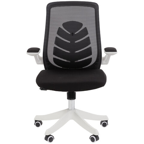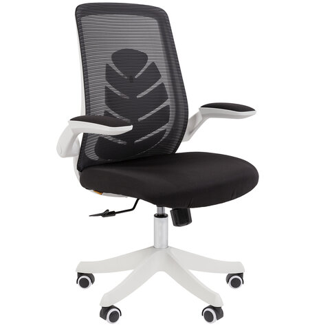 Кресло Chairman CH 565, откидные подлокотники, синхромеханизм, пластик белый, сетка/ткань, черное, 7146048