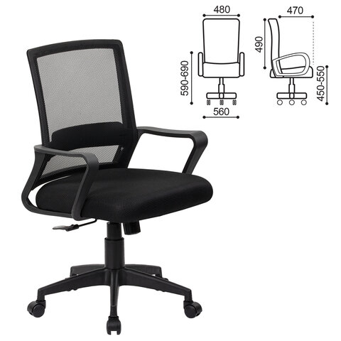 Кресло CROMEX (КРОМЕКС) "Basic CH-698", с подлокотниками, механизм качания, сетка/ткань TW, черное, 533069