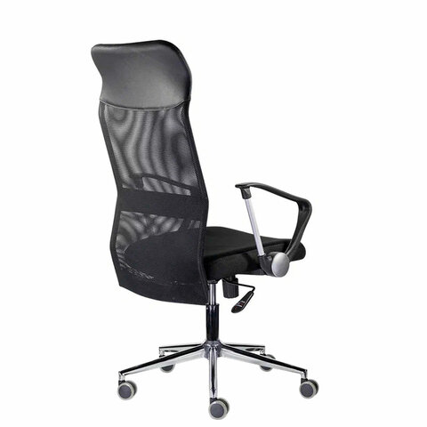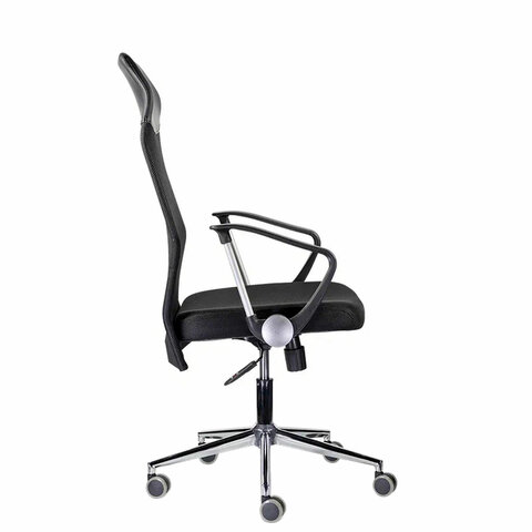 Кресло "Директ Лайт" МС-040, высокая спинка, с подлокотниками, хром, черное