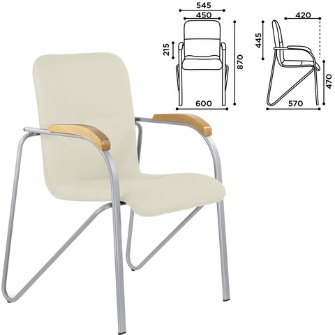 Кресло BRABIX "Samba CF-106 BOX-2", серый каркас, накладки "бук", кожзам бежевый, разобрано, 532764