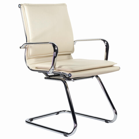 Кресло для приемных и переговорных BRABIX "Kayman CF-102", экокожа, хром, бежевое, 532573