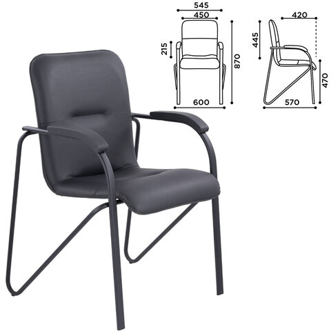 Кресло для приемных и переговорных BRABIX "Samba CF-107", черный каркас, кожзам черный, собранное, 533189