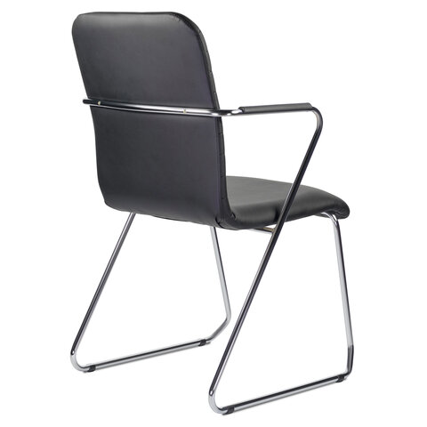 Кресло для приемных и переговорных BRABIX "Visit CF-101", хром, экокожа, черное, 532559