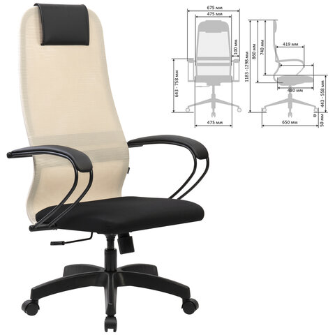Кресло BRABIX PREMIUM "Ultimate EX-800" пластик, плотная двойная сетка Х2, черное/бежевое, 532916
