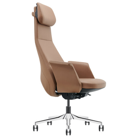 Кресло HAWASAN PREMIUM EX-840 STELLAR, синхромеханизм, алюминий, экокожа, коричневое, 533242