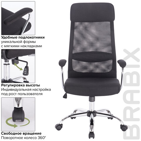Кресло офисное BRABIX "Flight EX-540", хром, ткань, сетка, черное, 531847