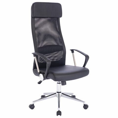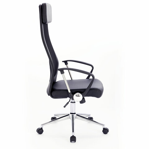 Кресло офисное BRABIX "Flight R EX-541", хром, экокожа, сетка, черное, 532516