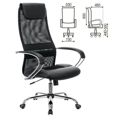 Кресло офисное BRABIX PREMIUM "Stalker EX-608 CH", хром, ткань-сетка/кожзам, черное, 532091