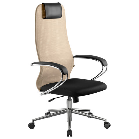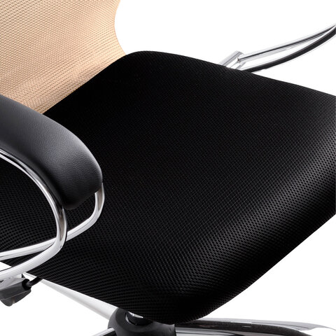 Кресло офисное BRABIX PREMIUM "Ultimate EX-800" хром, плотная двойная сетка Х2, черное/бежевое, 532913