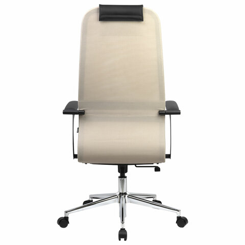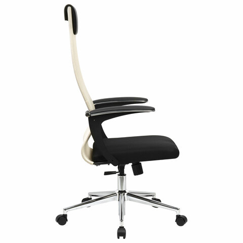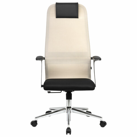 Кресло офисное BRABIX PREMIUM "Ultimate EX-801" хром, плотная двойная сетка Х2, черное/бежевое, 532919