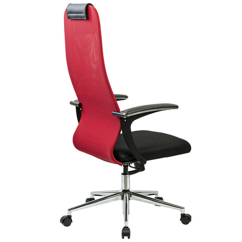 Кресло офисное BRABIX PREMIUM "Ultimate EX-801" хром, плотная двойная сетка Х2, черное/красное, 532921