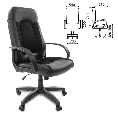 Кресло офисное BRABIX "Strike EX-525", экокожа черная, ткань черная, TW, 531381