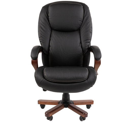 Кресло офисное CHAIRMAN СН 408, НАГРУЗКА до 150 кг, дерево, натуральная кожа, черное, 7030084