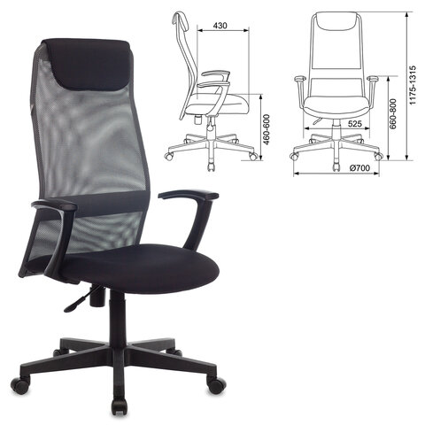 Кресло офисное KB-8, ткань-сетка, серое, 496676