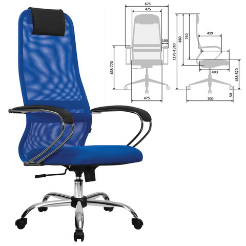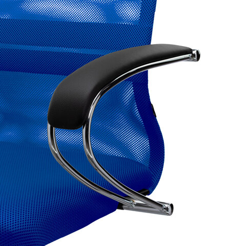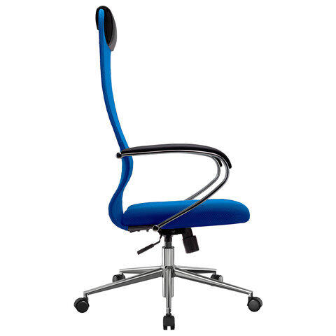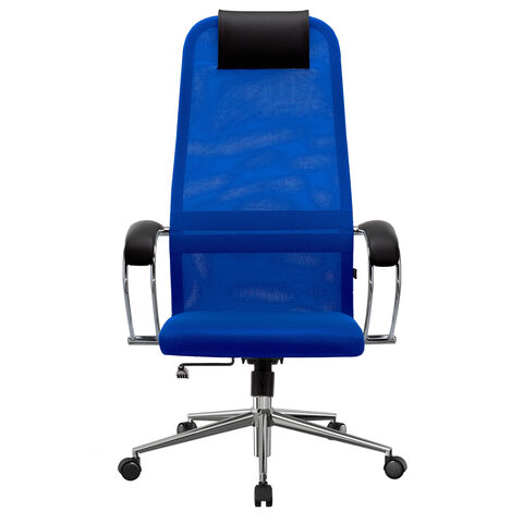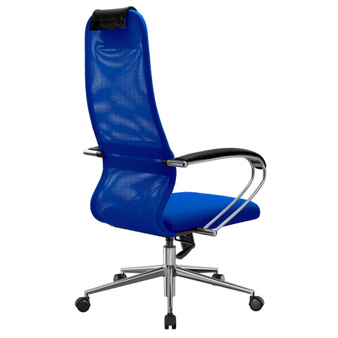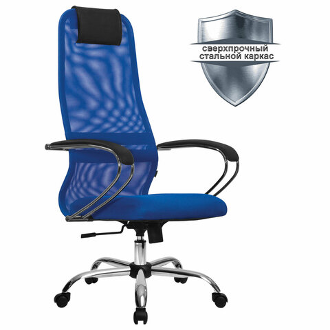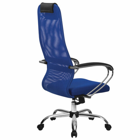 Кресло офисное МЕТТА "SU-B-8" хром, ткань-сетка, сиденье мягкое, синее