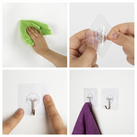 Крючки самоклеящиеся на липкой прозрачной основе уберегут ваши стены от сверления. Подойдут для крепления на гладких, непористых поверхностях. Благодаря стильному современному дизайну впишутся в любой интерьер, помогут организовать удобное хранение вещей.