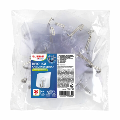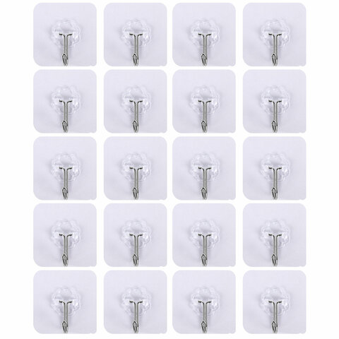 Крючки самоклеящиеся универсальные 6х6 см, КОМПЛЕКТ 20 шт., сталь + ПВХ, LAIMA Home, 608792